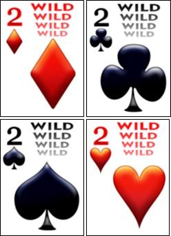 Como consequência, você recebe dois (2) como curingas para ajudar a criar a melhor mão e vencer o dealer, além de ter o novo pagamento de cinco cartas iguais (com um dois) como recompensa extra.