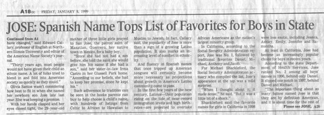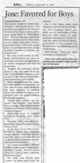 O artigo a seguir foi publicado na edição de 8 de janeiro de 1999 do Los Angeles Times. A primeira parte foi destaque na primeira página. Clique em qualquer imagem para ampliá-la.