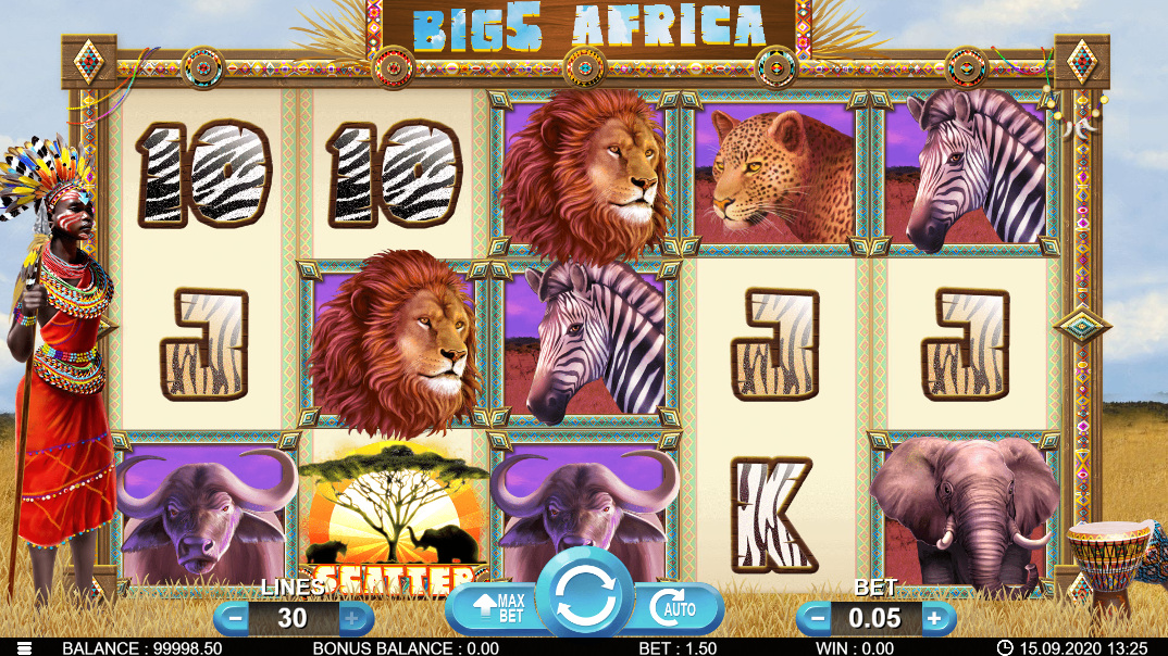 Lançado em 1º de fevereiro de 2021, Big5 Africa é um caça-níquel de vídeo que leva você para o coração da savana com uma configuração de 5x3 cilindros e 30 linhas de pagamento. O jogo possui um RTP de 95,24%, uma baixa taxa de acerto e volatilidade média a alta, então espere menos vitórias, mas com o potencial de pagamentos maiores quando elas acontecerem.