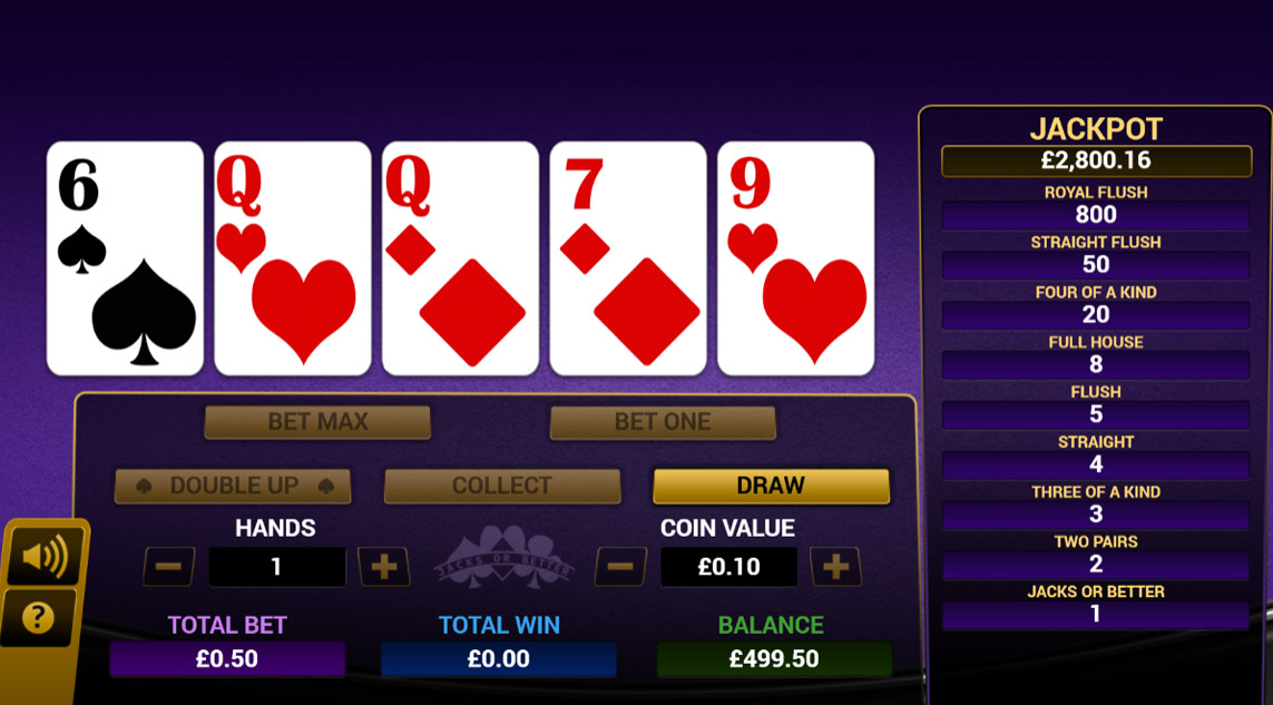 Amaya segue a tabela de pagamentos do Jacks or Better de 9 a 6, com um retorno de 99,54%.
