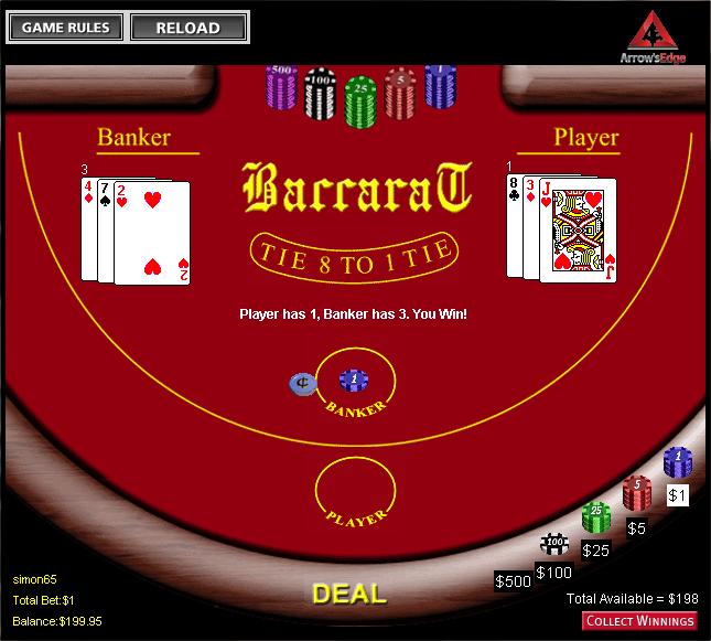 As regras padrão do bacará são seguidas. A aposta no empate paga as desfavoráveis probabilidades de 8 para 1. As regras não especificam o número de baralhos, mas isso não importa muito. Considerando oito baralhos, a vantagem da casa em cada aposta é: