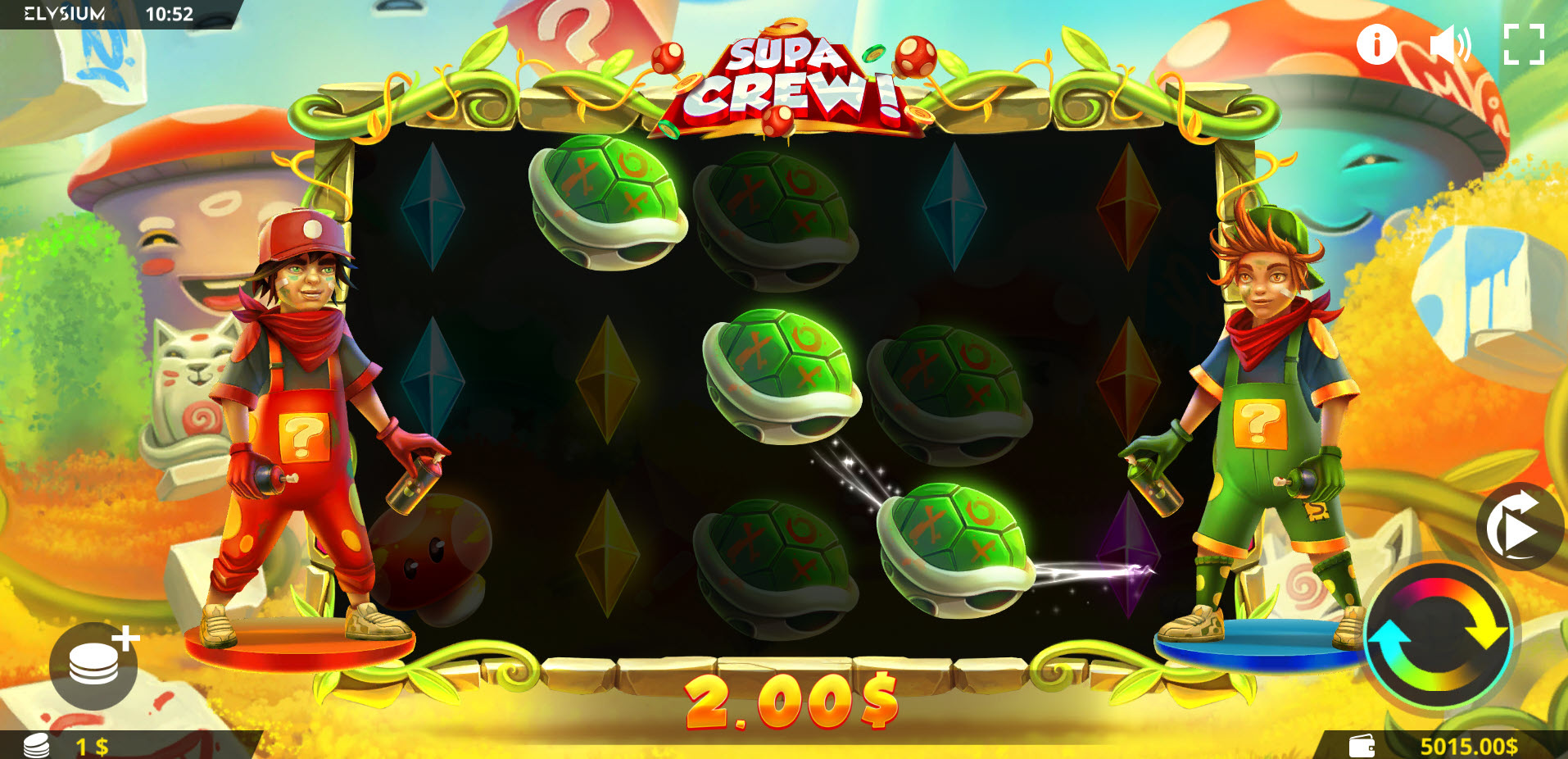 - Supa Crew — Este jogo de cinco cilindros tem muitos símbolos de "moeda" que se viram para revelar um símbolo aleatório. Se o jogador conseguir várias moedas na mesma rodada, todas elas revelarão o mesmo símbolo. Há também super moedas, que cobrem um quadrado de 3x3 na tela com moedas. Além disso, existem símbolos multiplicadores 2x2 que pagam um prêmio aleatório. Por fim, há os Supa Crew Brothers, que transformam alguns símbolos perdedores em vencedores.