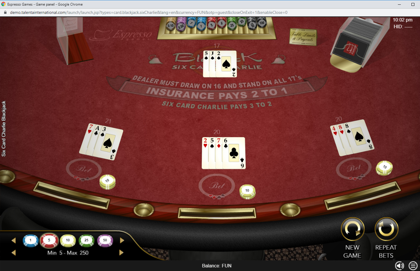 Por fim, o Six Card Charlie Blackjack oferece uma regra que eu nunca tinha visto antes, onde uma mão de seis cartas que não ultrapasse 200 pontos vence automaticamente e paga 3 para 2. Já vi a regra da vitória automática muitas vezes, mas pagar 3 para 2 é novidade. Tive que fazer uma análise para descobrir o efeito dessa regra, que, com a estratégia adequada, resulta em uma redução da vantagem da casa de 0,31%. Sem essa regra, a vantagem da casa seria de 0,70%, então, com a redução de 0,31%, a vantagem da casa cai para 0,39%.