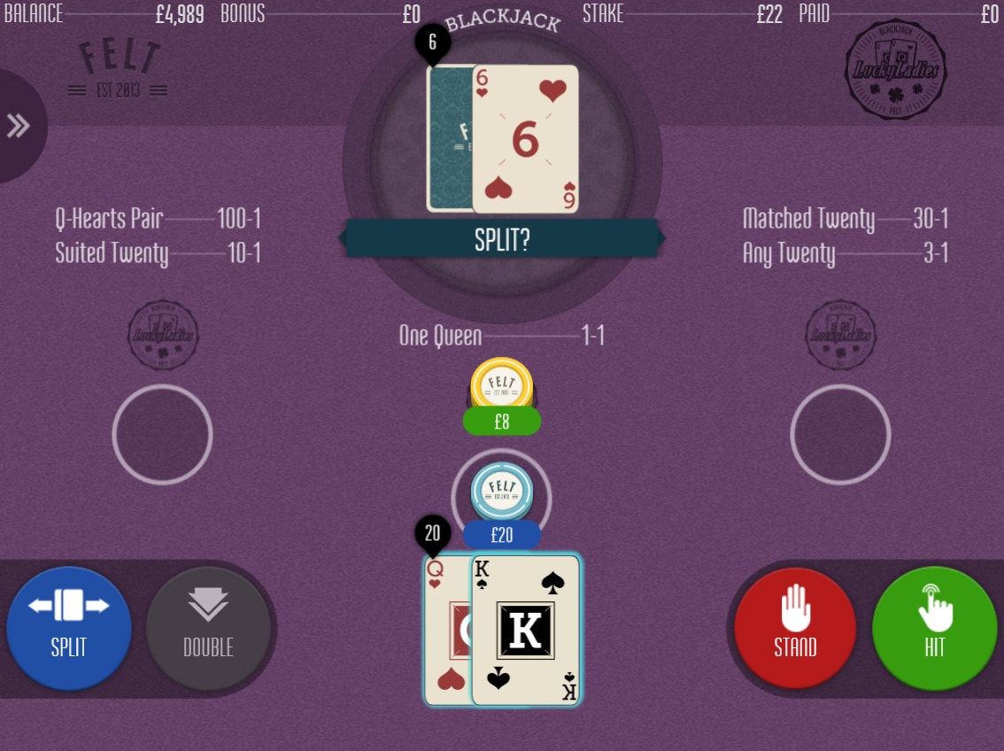 A Felt oferece sete jogos de blackjack. Todos eles seguem as mesmas regras básicas: