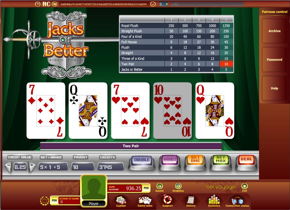 | Jacks or Better | 97.19% | Sim | 1-2-3-4-6-9-20-50-250 | Não |