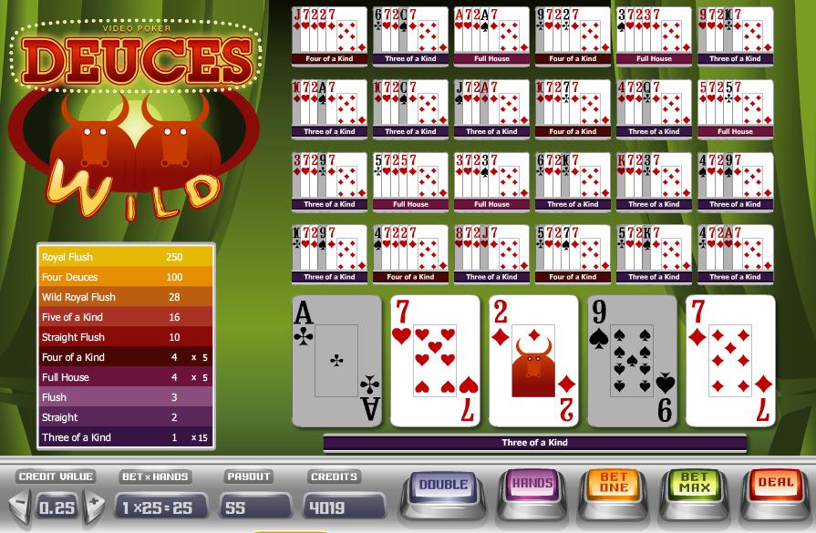 | Deuces Wild | 97.27% | Sim | 1-2-3-4-4-10-16-28-100-250 | Não |