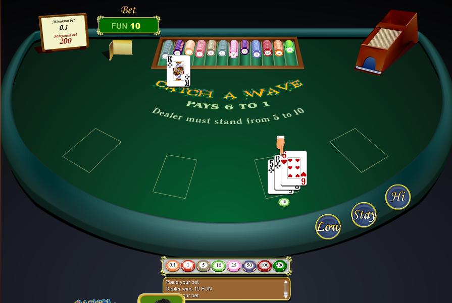 Para os veteranos como eu, Catch a Wave é vagamente baseado no antigo programa de TV Card Sharks. O objetivo é prever se a próxima carta no baralho é maior ou menor que a anterior, até seis vezes. O jogador também tem a opção de parar durante o jogo, caso em que o crupiê tem a chance de vencê-lo.