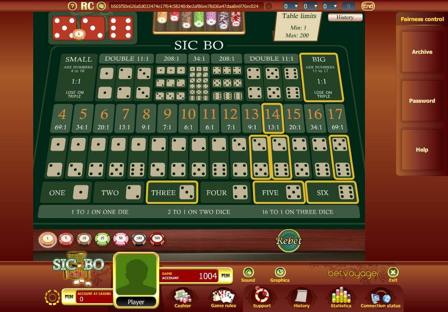 Analisei a versão do sic bo com vantagem da casa zero. As apostas em um total específico não têm vantagem da casa zero, mas todo o resto parece ter.