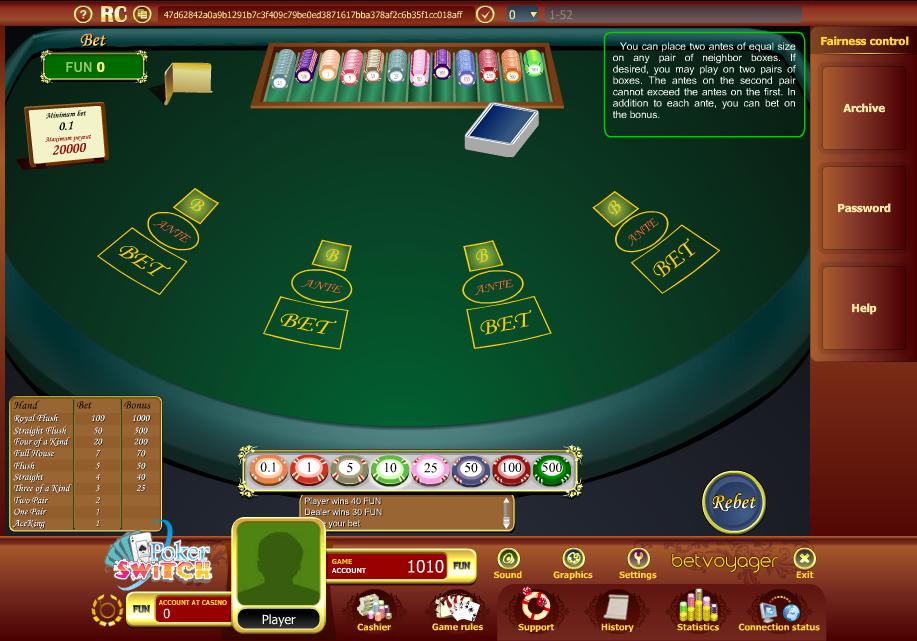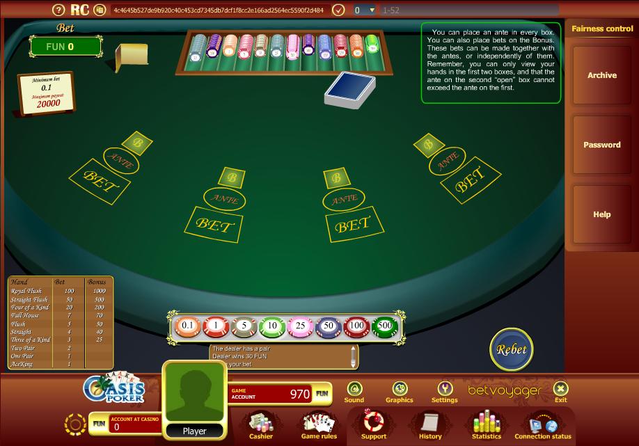 - Não há bônus Ante.