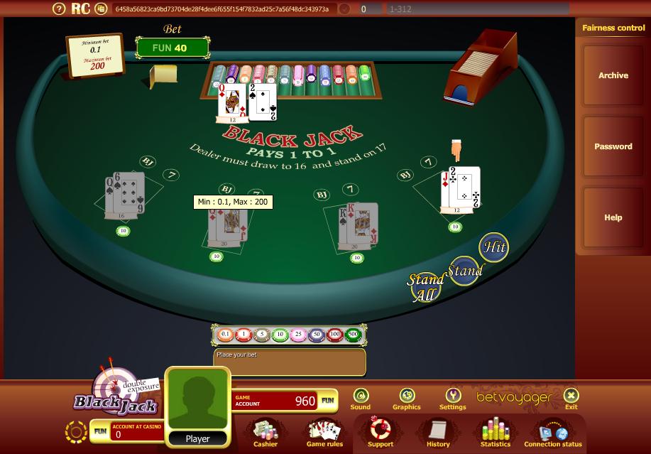 - Blackjack com Dobradinha: Qualquer blackjack em espadas paga 2,5. Isso reduz a vantagem da casa em 0,30%, de 0,38% para 0,08%.