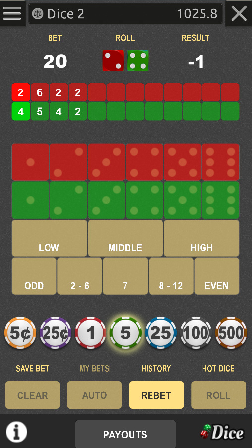 Este é mais um jogo que só tem uma versão "sem vantagem da casa". Para mais informações, consulte minha página sobre Dados .
