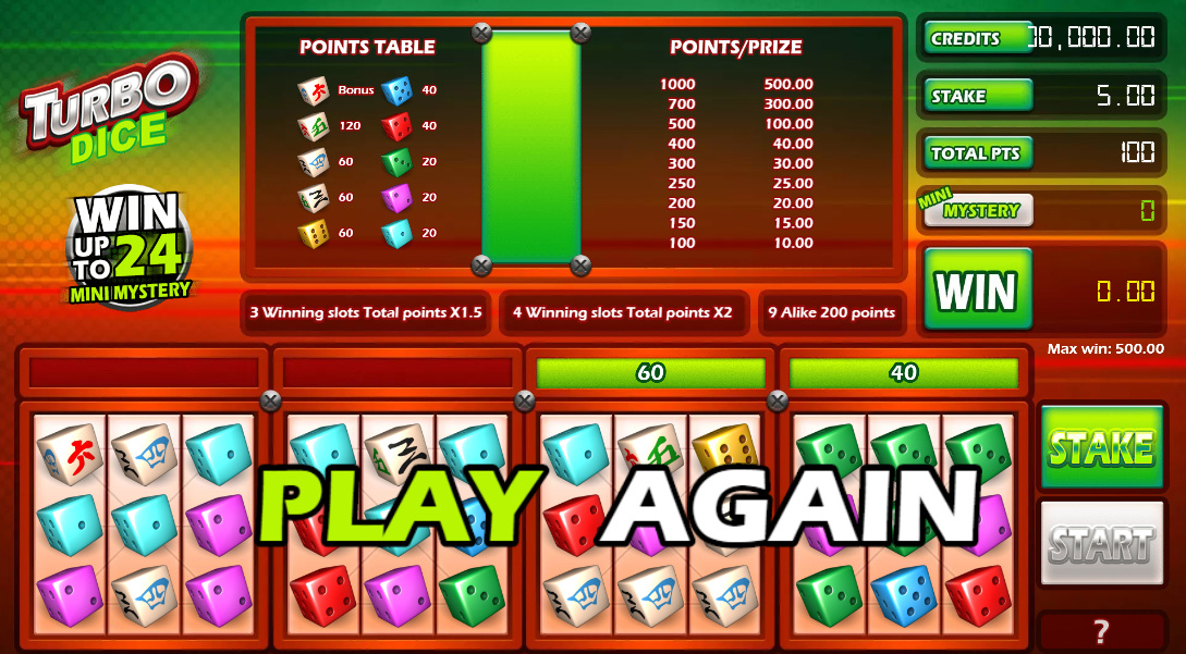 O Gaming1 oferece diversos "jogos de dados". Esses jogos envolvem 12 lançamentos de 3 dados. O jogador pode escolher em qual das quatro grades 3x3 posicionar cada lançamento. Ao completar uma grade, o jogador ganha se houver três símbolos iguais em uma linha ou diagonal.