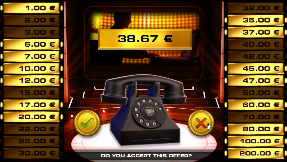 Na roleta Deal or No Deal, joga-se em uma roda de 38 casas, com todos os números de 0 a 37, mais um marcado como "Bônus". Se o jogador apostar na área de Bônus e a bola parar nela, ele jogará uma rodada bônus Deal or No Deal. Há também um ponteiro que gira aleatoriamente pela roda. Ele não tem outra função além de indicar apostas no Bônus. Se o jogador apostar no Bônus, a bola parar na área de Bônus e o ponteiro apontar para a casa de Bônus na roda, o jogador jogará o Super Bônus. Isso acontecerá uma vez a cada 1.444 giros, então me perdoe se eu não entender o que significa.