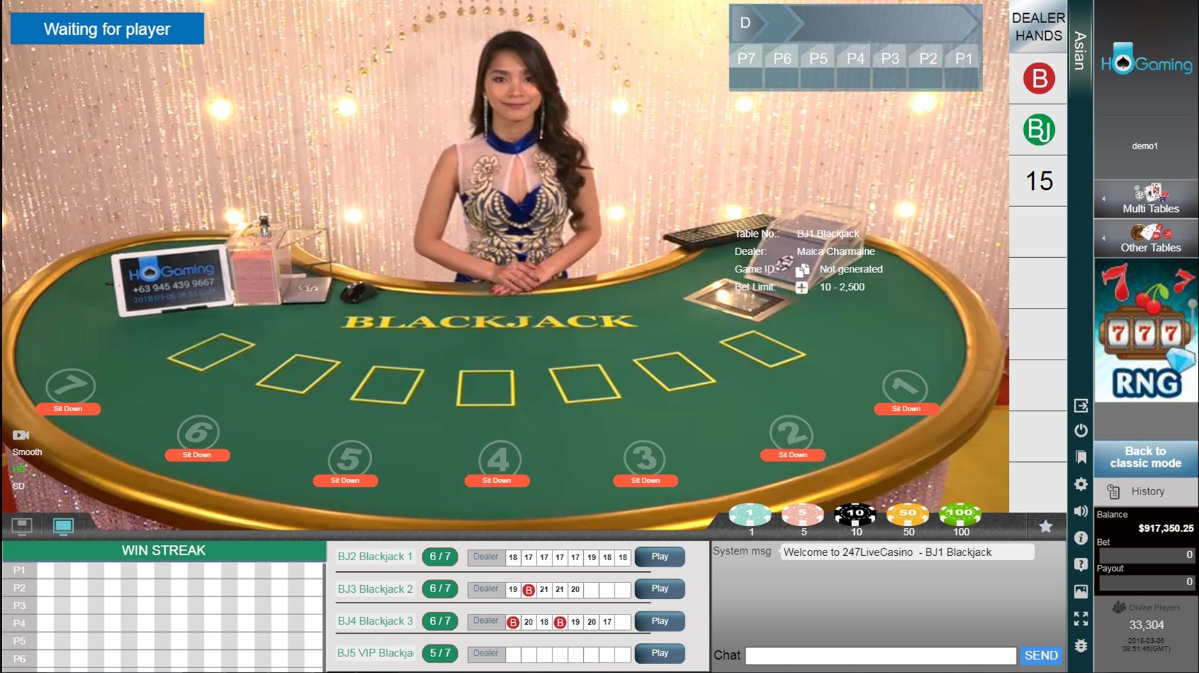 A HoGaming oferece seis "jogos RNG", que presumo serem máquinas caça-níqueis. O site deles só tem capturas de tela, que estou compartilhando aqui. Desculpe, gostaria de saber mais, mas não sei.