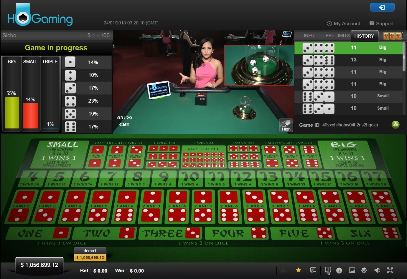 Preciso chamar a atenção especialmente para as probabilidades terríveis no jogo de sic bo, com vantagens da casa de até 47,22%. Isso é quase criminoso. Ou a HoGaming desconhece os pagamentos praticados no mercado, ou é extremamente mesquinha com seus jogadores.