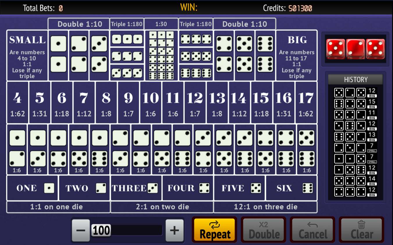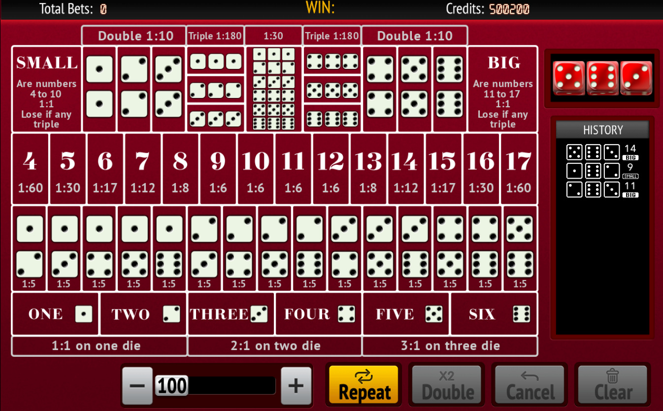 Os dois jogos de sic bo parecem idênticos, exceto pelo fato de a versão australiana ter melhores probabilidades e ser jogada em uma mesa com feltro azul em vez de vermelho. Não sei por que alguém jogaria na mesa vermelha genérica, mas tenho certeza de que jogam. As duas tabelas a seguir mostram as apostas, as probabilidades, a probabilidade de ganhar e a vantagem da casa para ambas as versões.
