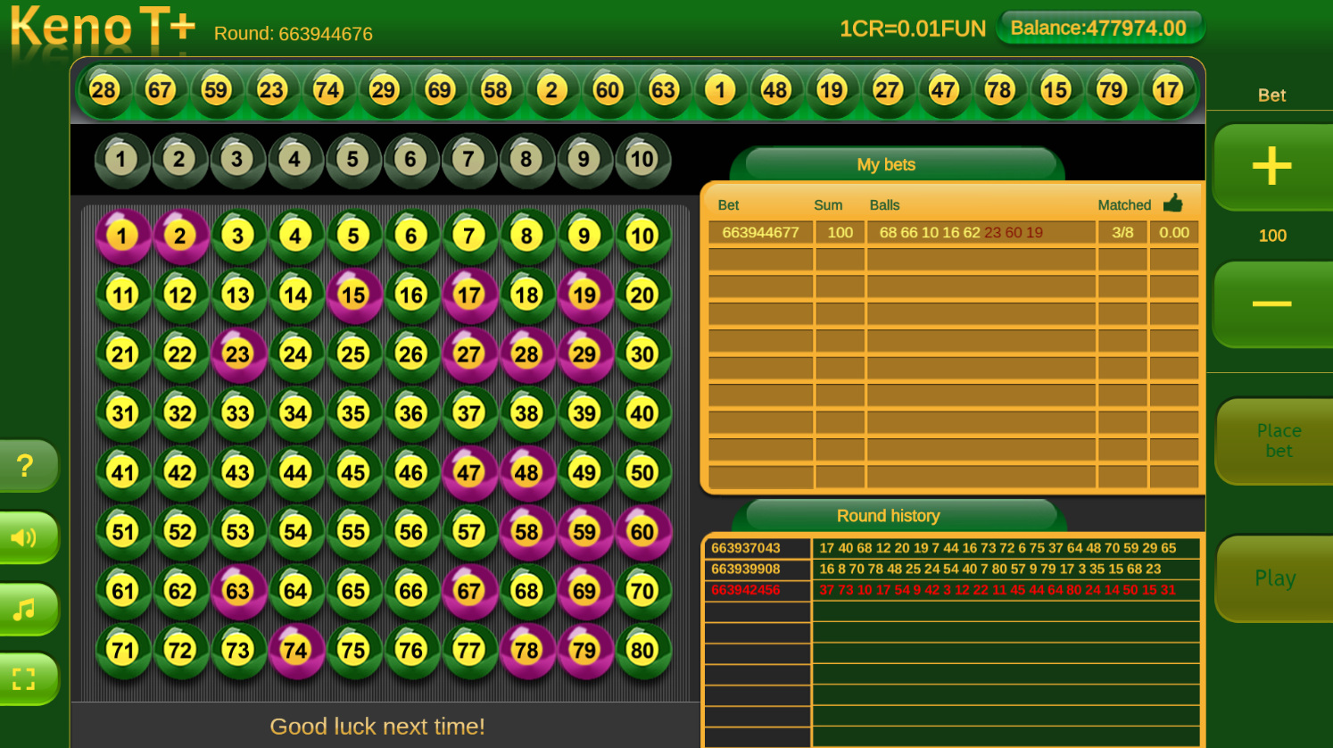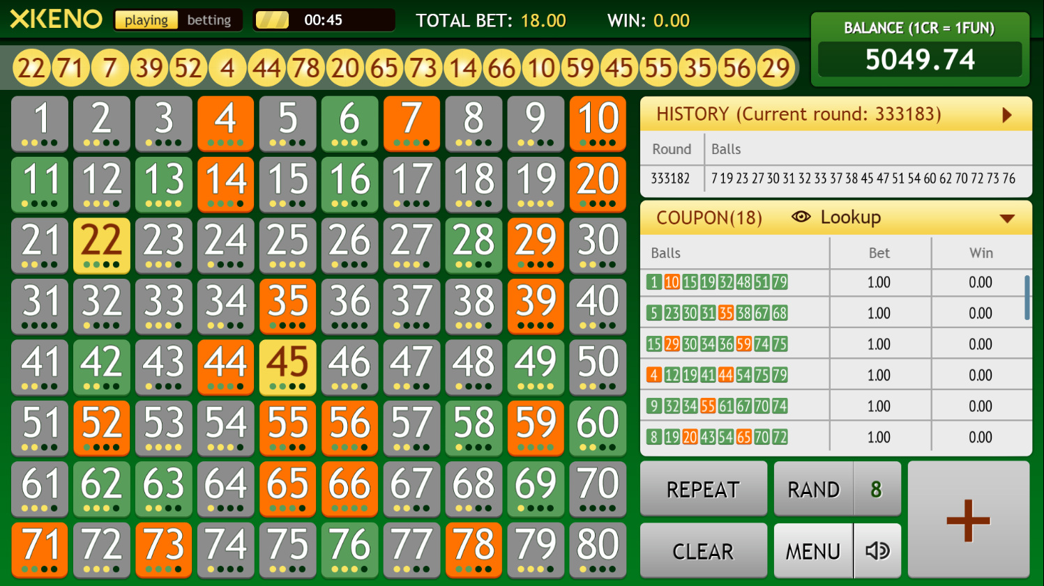 Este jogo parece igual ao Turbo Keno, incluindo a tabela de pagamentos, só que é um pouco mais lento e tem uma trilha sonora com sonoridade asiática.