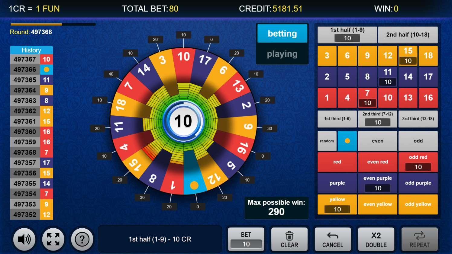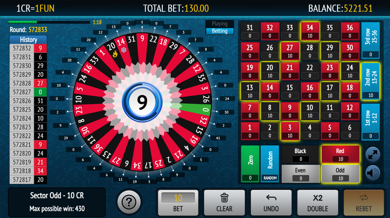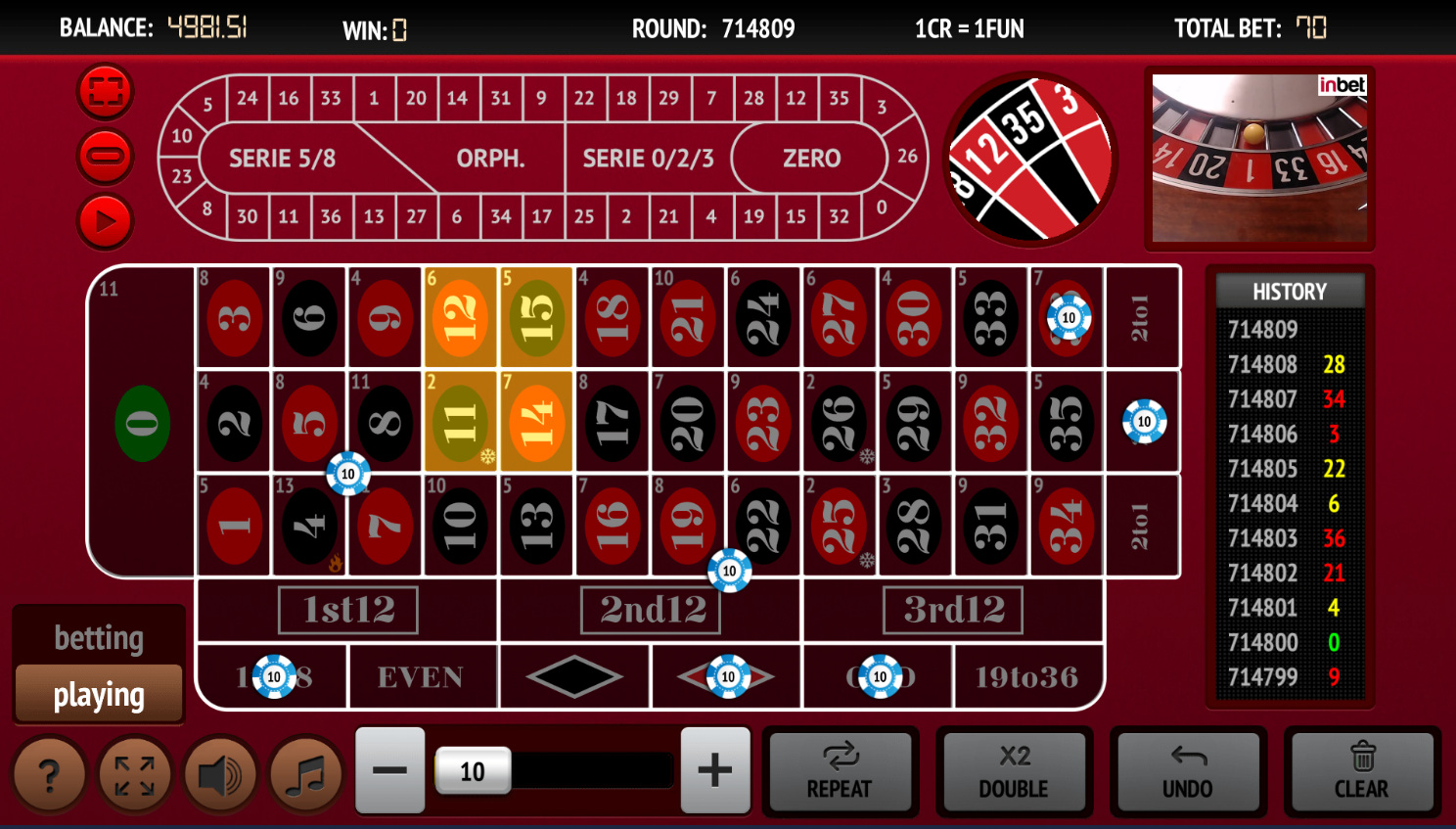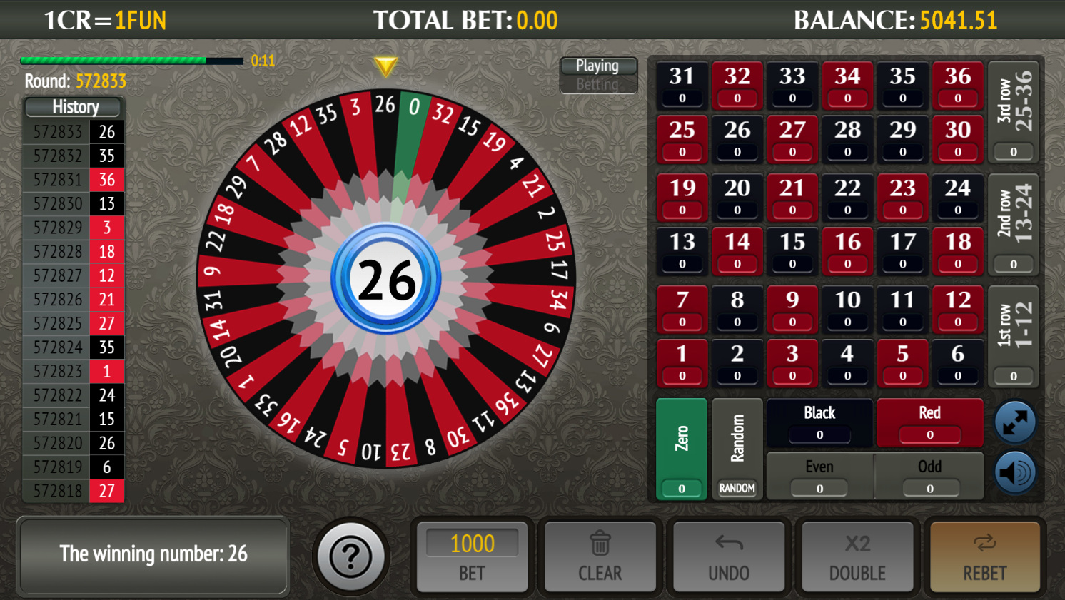 Existem três maneiras de jogar roleta de 37 números. A primeira é a "roleta ao vivo", que é um jogo de roleta padrão baseado no resultado de uma roda real. Há uma rodada a cada 60 segundos, aproximadamente. As outras duas são Fortuna e Black Fortuna. Matematicamente, são iguais à roleta, mas jogadas em uma roda vertical com um layout de apostas 6x6. As probabilidades são as mesmas nas três, com uma vantagem da casa de 2,70% em cada aposta.