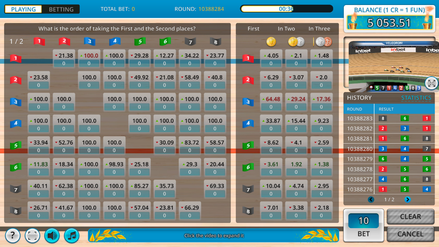 O Velodrome é praticamente uma versão modificada do Dogs 3D , só que com oito ciclistas em vez de seis cães. Depois de fazer todos os cálculos, cheguei a um retorno de 92% nas apostas de vitória, segundo e terceiro lugar, e 80% nas apostas exatas.
