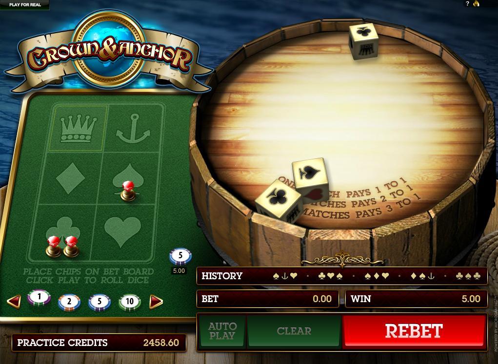 A vantagem da casa no Crown and Anchor é de 7,87%. A aposta equivalente no Sic Bo tem uma vantagem da casa de 3,70%. Portanto, não há motivo para jogar Crown and Anchor quando a Microgaming oferece uma aposta melhor no Sic Bo a apenas dois cliques de distância. Jogar este jogo seria como apostar no Big 6 ou no Big 8 no Craps. Por que receber apenas o dobro do valor apostado quando uma aposta de lugar é exatamente a mesma, mas paga 7 para 6?