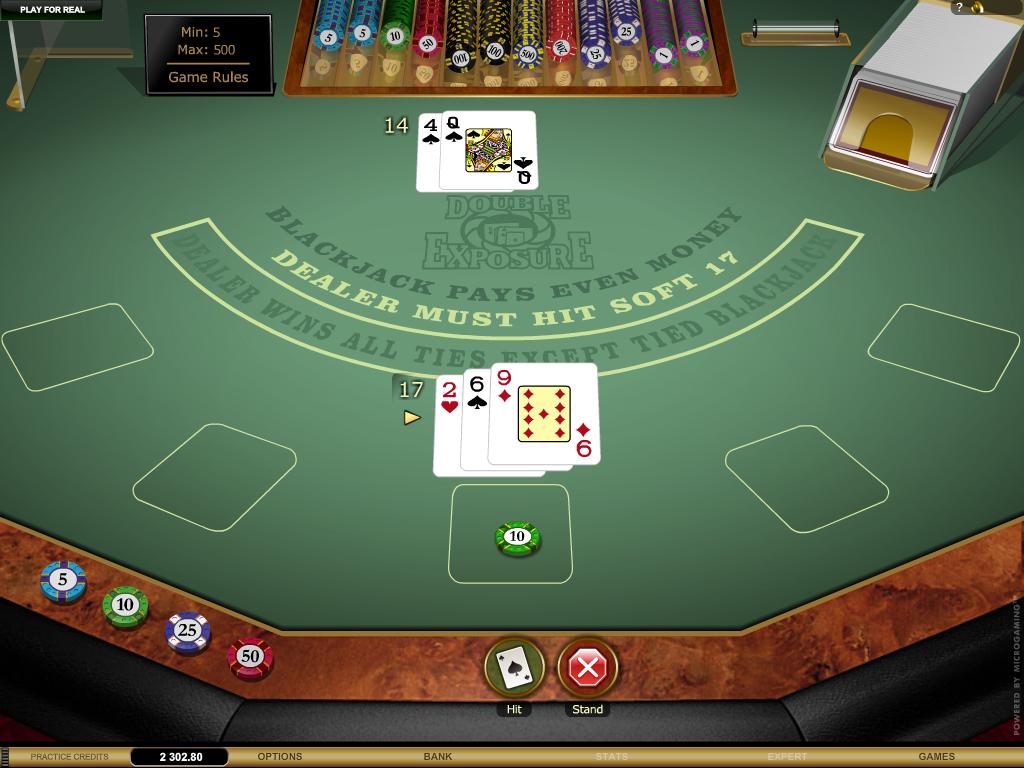Seguindo a tradição de apreciar jogos de mesa clássicos, a Microgaming oferece o Double Exposure . Para quem não conhece, o jogo é semelhante ao blackjack, com a diferença de que ambas as cartas do dealer ficam expostas. Por isso, o jogador perde na maioria dos empates e um blackjack paga o dobro da aposta. Aqui estão as regras específicas da Microgaming.