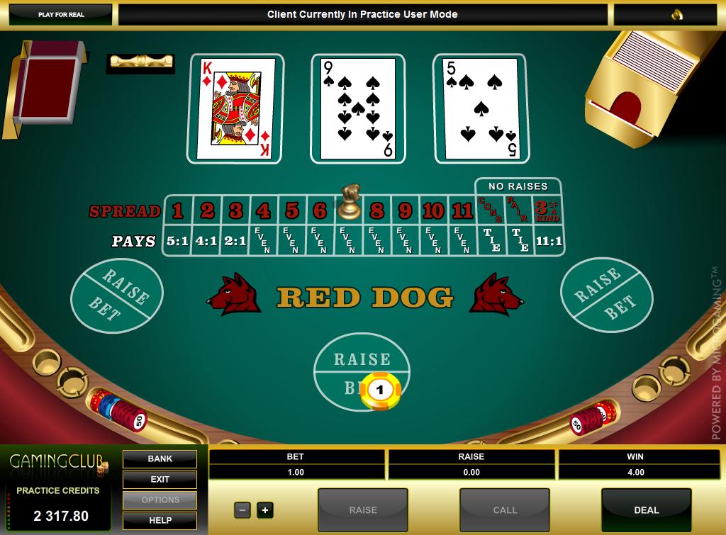 Os cassinos da Microgaming devem ser um dos poucos lugares restantes no mundo onde ainda se pode apostar em Red Dog . Lembro-me de jogar este jogo no antigo Silver City de Las Vegas na década de 1980, mas se não fossem os cassinos online, eu teria pensado que ele havia desaparecido há muito tempo, como o dodô.