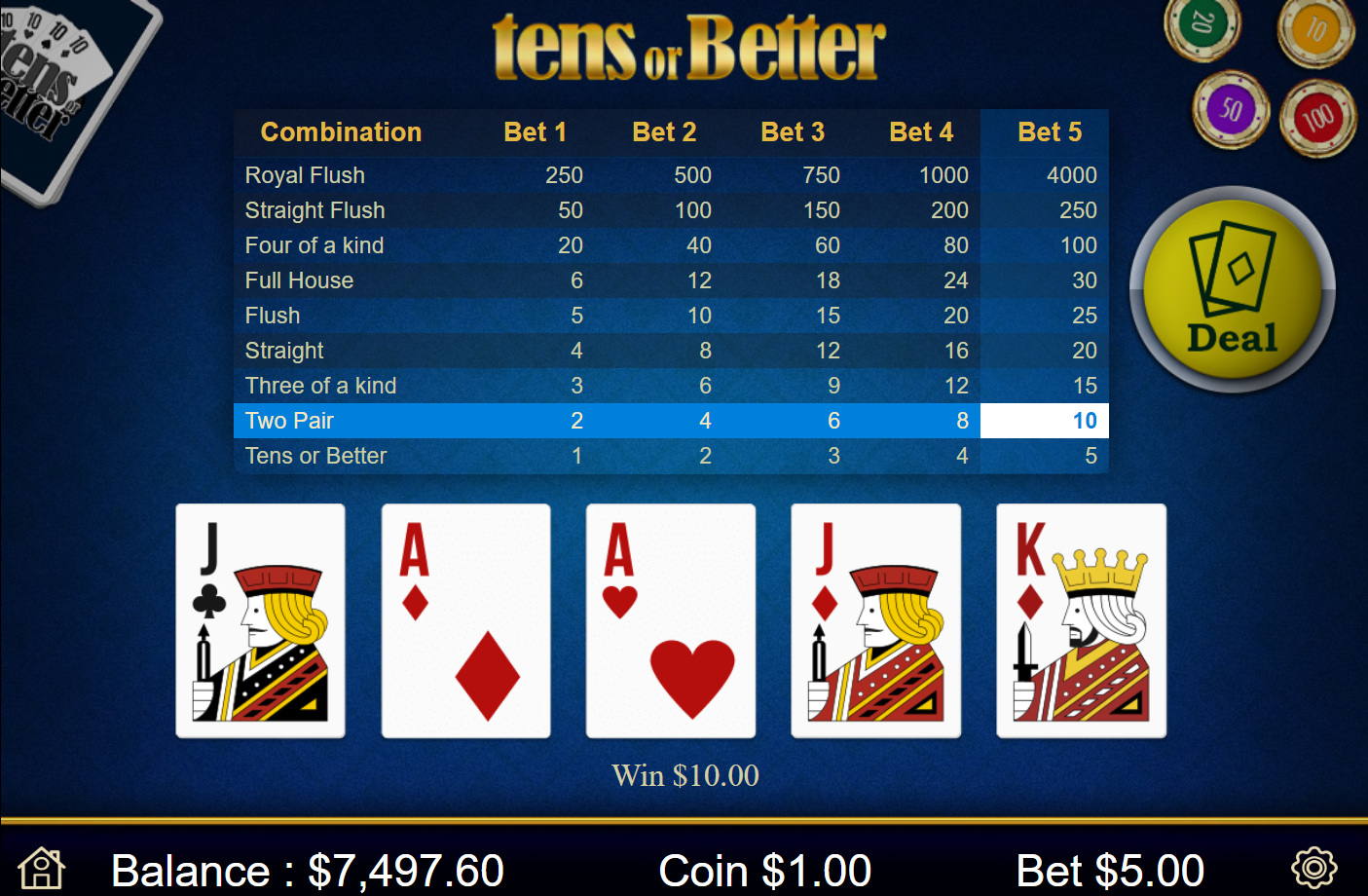 A tabela a seguir mostra os Video Poker jogos disponíveis em ordem alfabética.