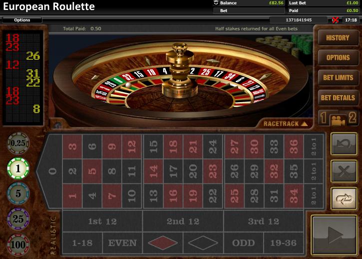Existem apenas dois jogos de roleta: a americana e a europeia. O jogo americano tem dois zeros, o que representa uma vantagem da casa de 5,26%. O jogo europeu tem apenas um zero. O manual de instruções não deixava claro se o jogador perde tudo ou apenas metade de uma aposta de odds iguais caso a bola caia no zero no jogo europeu. Então, joguei mais de 100 rodadas no BetVictor para descobrir. Infelizmente, a bola finalmente caiu no zero e eu perdi apenas metade. A vantagem da casa sob essa regra francesa de "metade de volta" é de 1,35%.