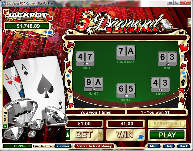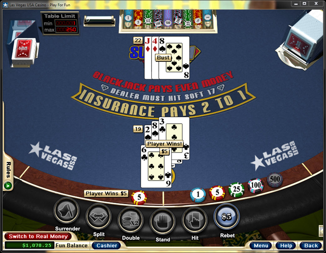 Esta é uma variante do blackjack com muitas regras flexíveis, comumente conhecida como Super Fun 21 em cassinos físicos. Para compensar todas as regras especiais, 94% dos blackjacks pagam apenas o valor da aposta (ou o valor da aposta). Aqui estão as regras da RTG: