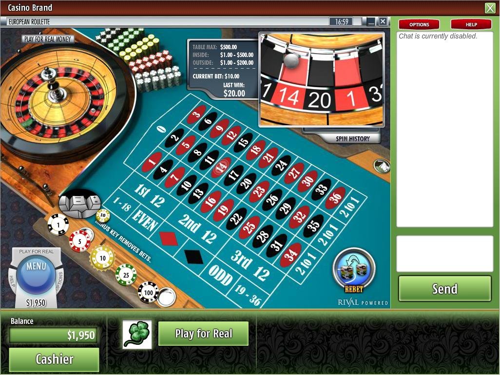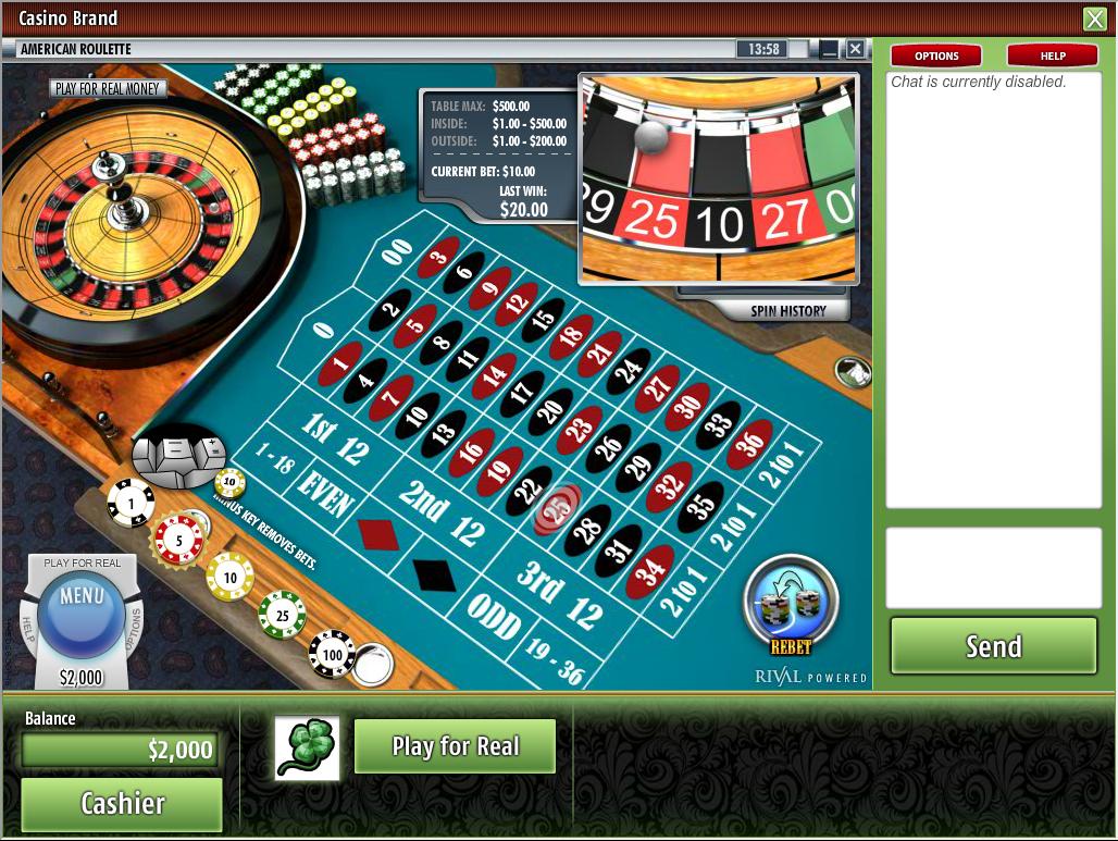 Estão disponíveis as versões de roleta com um zero e com dois zeros. Em ambos os casos, as apostas com pagamento igual perdem quando a bola cai em qualquer um dos zeros. A vantagem da casa é de 2,70% no jogo com um zero e de 5,26% no jogo com dois zeros.