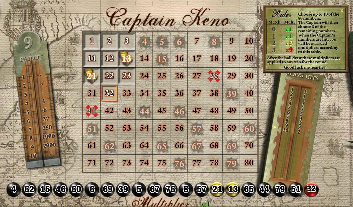 - Capitão Keno: Escolha 7 com 94,70% de chance de acerto.