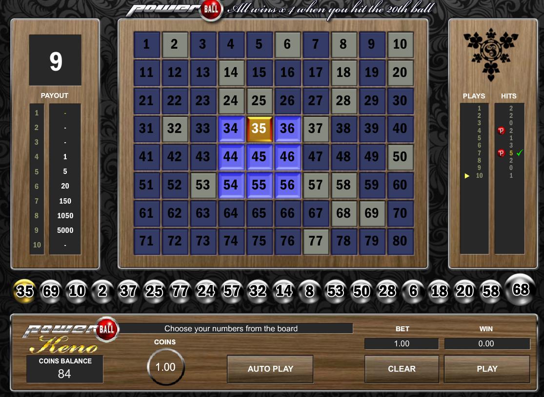 - Powerball Keno: Escolha 5 com 95,21% de chance de acerto.