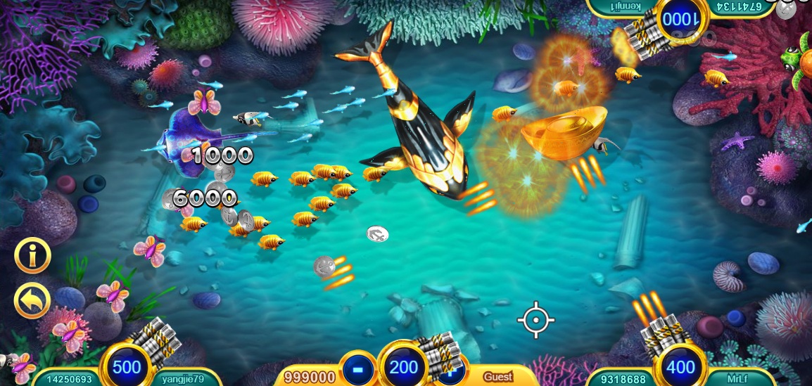O site da empresa indica quatro jogos de arcade diferentes, mas encontrei apenas um deles em um site de "jogar de graça", o Fu Fish. Devo dizer que era muito bem feito e, pelo que sei, único. O objetivo era bem simples: atirar em peixes. Cada tiro disparado era uma aposta. Não parecia fazer diferença para onde você mirava; às vezes acertava um peixe, às vezes não. Peixes diferentes rendiam quantias diferentes. Suspeito que não haja nenhum componente de habilidade, já que a tela de ajuda informava que o retorno ao jogador era de 97%.