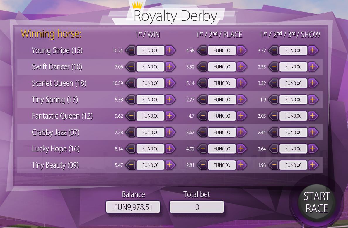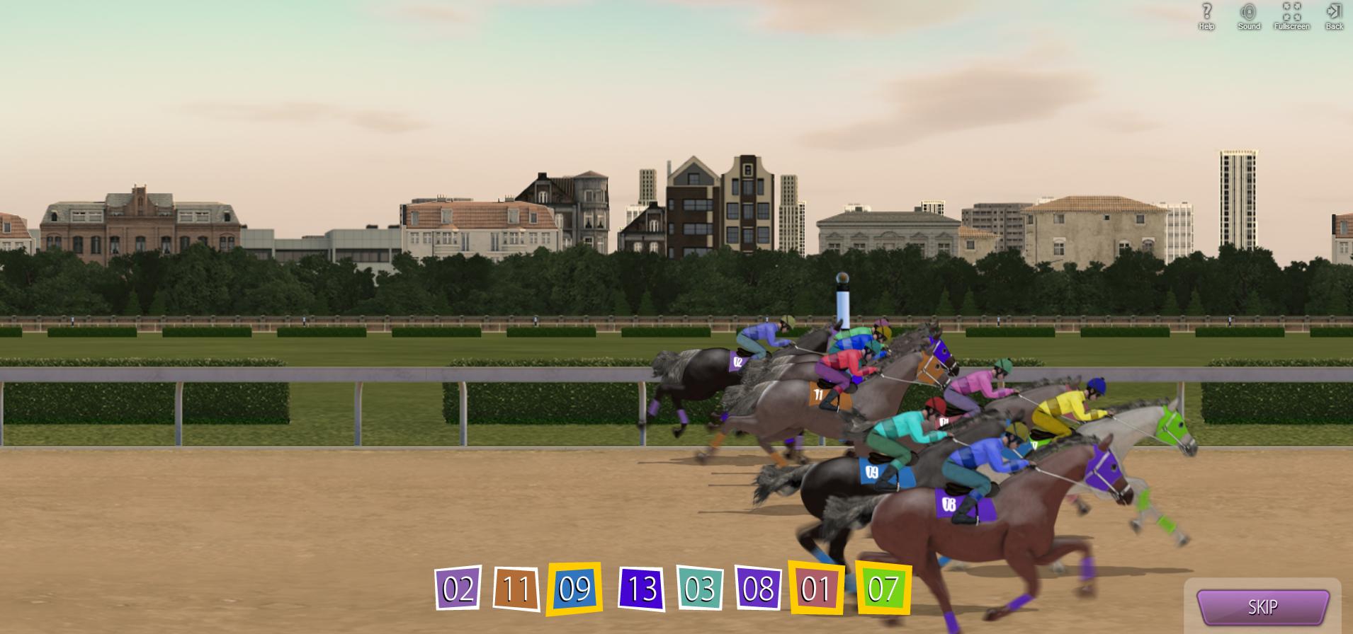 Este é um jogo de corrida de cavalos simples e bem feito. Há oito cavalos e o jogador pode apostar na vitória, no segundo lugar ou no terceiro lugar de qualquer um deles.