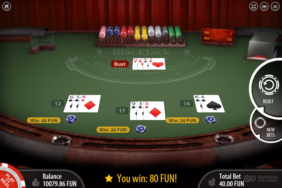 O termo "jogo europeu" é um equívoco. Normalmente, a principal diferença entre o blackjack europeu e o jogo americano é que o dealer não recebe uma carta fechada, o que significa que o jogador corre o risco de sofrer um blackjack do dealer ao dobrar ou dividir a aposta contra um 10 ou um ás. No entanto, o jogo da SOFTSWISS recebe uma carta fechada, assim como acontece com a versão americana. Portanto, não faço ideia do porquê de o chamarem de "europeu".