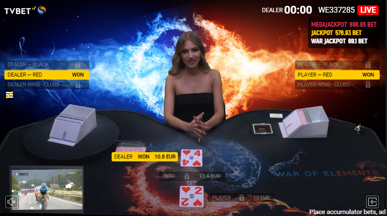 War of Elements é uma versão aprimorada do Casino War. Utiliza-se um baralho de cartas. O jogador pode apostar no lado vencedor, bem como em diversas apostas paralelas. As probabilidades são atualizadas dinamicamente à medida que o crupiê revisa as cartas. Parece ser muito semelhante ao War of Bets .