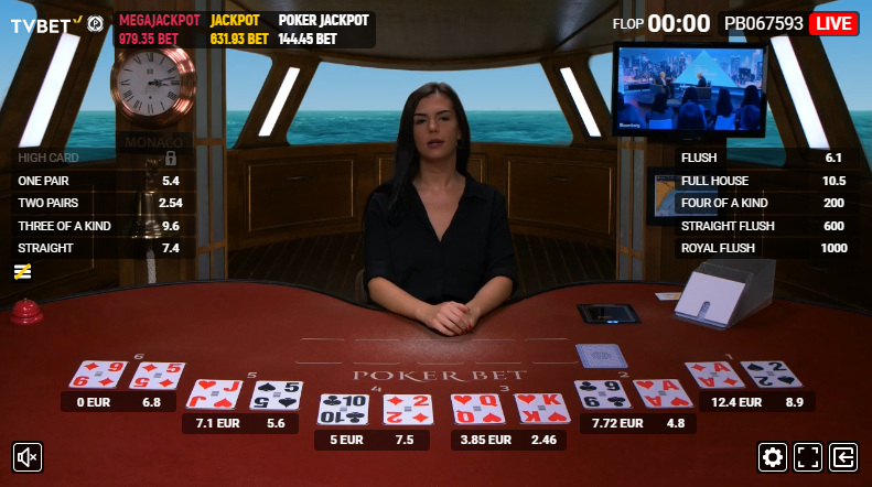 A TVBet é uma desenvolvedora de software para cassinos com crupiês ao vivo, sediada no Chipre. O grupo transmite jogos em alta definição a partir de seus estúdios. A empresa conta com uma seleção de apresentadores atraentes e oferece títulos como Keno, blackjack, gamão, pôquer, roleta e muito mais.