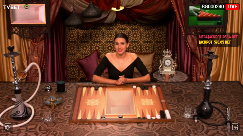 Esta é a primeira vez que vejo gamão de verdade em um cassino. Infelizmente, não havia nenhum manual de instruções do jogo disponível no momento desta avaliação. Havia uma lista muito longa de apostas, a maioria delas em russo. Só de observar o jogo, acho que um computador diz ao crupiê quais peças mover. O jogador pode apostar no vencedor da partida, além de fazer várias apostas especiais.