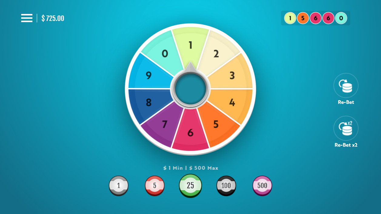 O jogo Spin the Wheel pode ser descrito como a versão deles da roleta. Ele apresenta uma roda vertical numerada de 0 a 9. Os jogadores podem apostar em qualquer número. Os ganhos têm um pagamento base de 9 para 1, além de um multiplicador. O multiplicador pode variar de 1x a 4x. Eles afirmam ter um retorno de 97,47%, o que indicaria que o multiplicador médio é de 1,083.