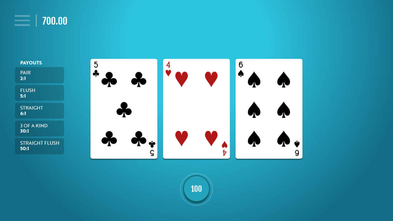 Teen Patti Rapid é um jogo simples que paga com base no valor de uma mão de pôquer de três cartas. Funciona da mesma forma que a aposta Pairplus no Three Card Poker . A tabela de pagamentos é a seguinte: