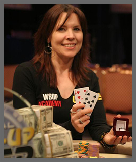 Já que foram brevemente mencionadas na Introdução desta página, vamos primeiro dar uma olhada em algumas das jogadoras de pôquer profissionais mais conhecidas ao longo dos anos. Este talvez represente o maior segmento de mulheres famosas no mundo dos jogos de azar, mas isso não se deve necessariamente ao fato de haver mais jogadoras de pôquer do que mulheres em outras áreas dos jogos, e sim ao "Boom do Pôquer", que colocou todos os jogadores de pôquer profissionais (homens e mulheres) em destaque durante vários anos no início dos anos 2000. Nessa época, houve alguns outros eventos televisionados nacionalmente, como alguns torneios de Blackjack , e também um programa que me lembro (mas não me recordo do nome) que era uma estranha mistura de jogos de torneio de cassino, como Blackjack, Craps, Roleta e talvez Bacará... mas não tenho muita certeza sobre este último.